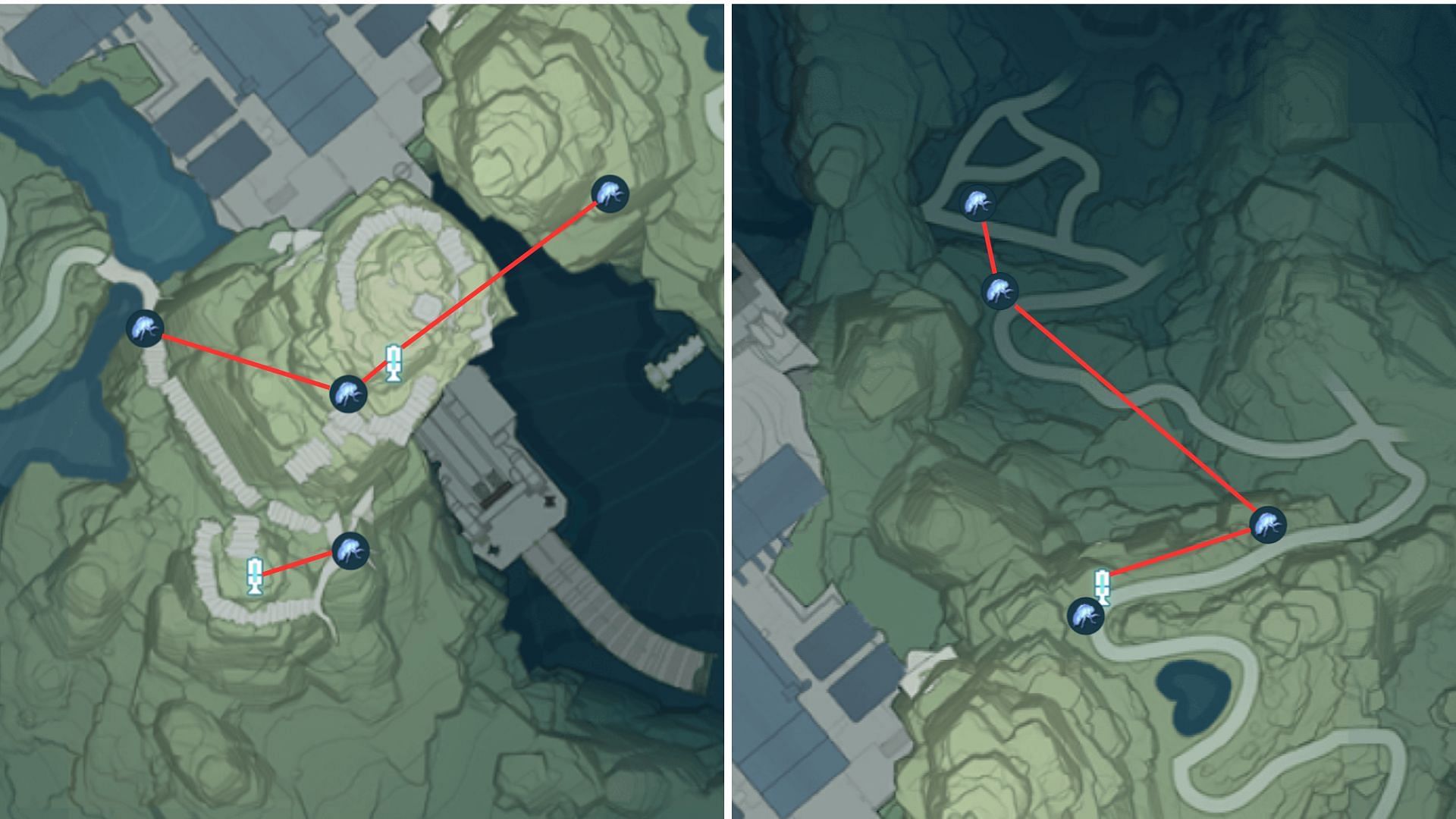 Another area in Dim Forest that has a high concentration of Gloom Sough spawns is Forbidden Forest. Just like the previous route, players will want to teleport to the marked resonance beacons and follow the routes shown in the image above to find all of the spawn locations.