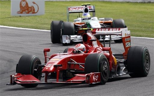 In qualifying, Fisichella in the Force India got a shock pole position, while Kimi could only manage to qualify 6th. In the race, Kimi quickly made up ground as by the end of the first lap he was second behind Fisichella.