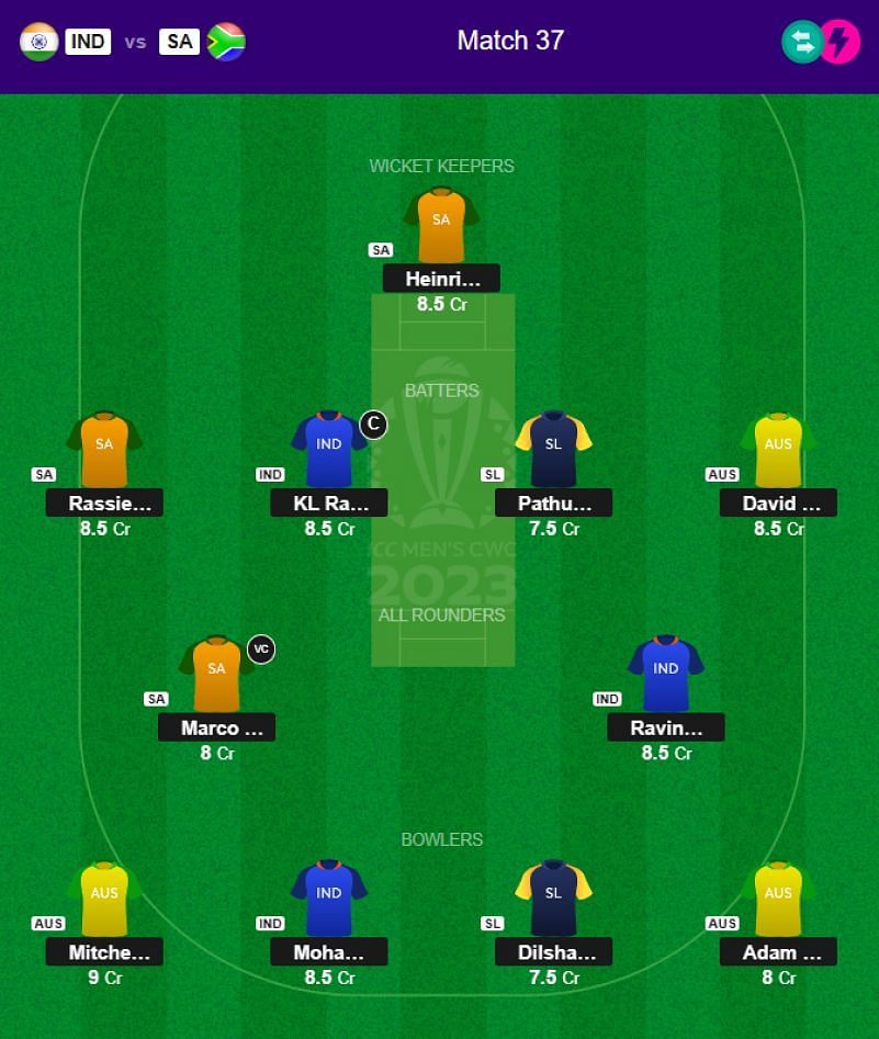 2023 World Cup Fantasy - Best Fantasy XI for Match 37 - IND vs SA: Final Lineup