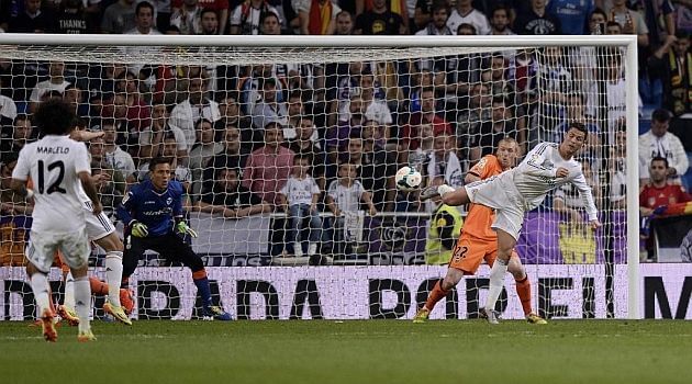 This time, with Los Blancos chasing the game, a cross was fired into the box, only for a Valencia defender to head it away. The ball fell to Angel Di Maria, who crossed back in, and somehow Ronaldo was able to contort his body to catch it cleanly with his right heel, sending it into the back of the net past the despairing dive of Valencia keeper Diego Alves.