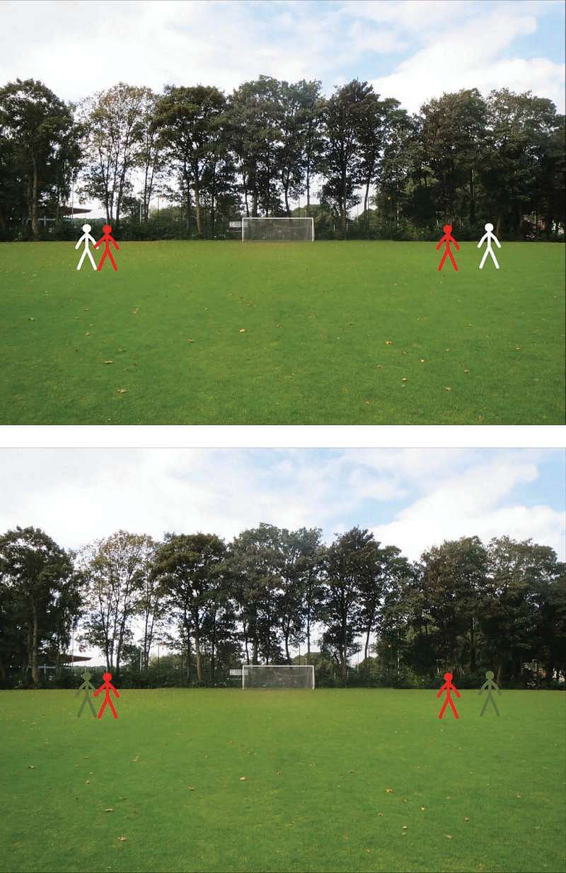 Study #1: Participants – everyday folk – were asked to watch animated players in different jersey colours interact with a “football field green” background on a computer screen. The participants were asked to estimate the distances between these players in different settings.