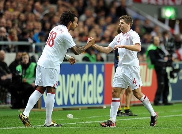 The captain of the England side in this friendly against Sweden, Gerrard was also substituted in the 74th minute for Tom Huddlestone. Gerrard went on to play 114 times for the English national team and retired in 2014.