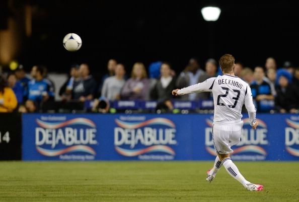 SANTA CLARA, CA – NOVEMBER 07: David Beckham #23 of the Los Angeles Galaxy passes the ball up field against the San Jose Earthquakes during the first half of the Western Conference Semifinals game at Buck Shaw Stadium on November 7, 2012 in Santa Clara, California. The Galaxy won the game 3-1.
