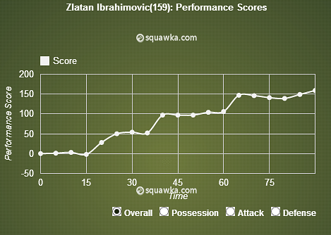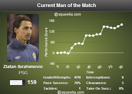 Zlatan was awarded an incredible 159 Squawka Performance Score, comfortably winning the Man of the Match award. He was as accurate as ever with his shooting: scoring four, having four shots saved and striking just two off target. His link up play was also impressive. The forward made one key pass and completed 39 out of 50 attempted passes. Unusually for Zlatan, he attempted no headed duels during the whole game. However after scoring two so early on from low crosses, it’s no surprise that Paris Saint-Germain continued to keep the ball on the floor when attacking. The other goal in the game, scored byEdinson Cavani, was also netted following a ground pass across the box. As well as scoring four, he made a notable defensive contribution. He was successful with three out of three clearances and also made a tackle deep inside PSG’s half.