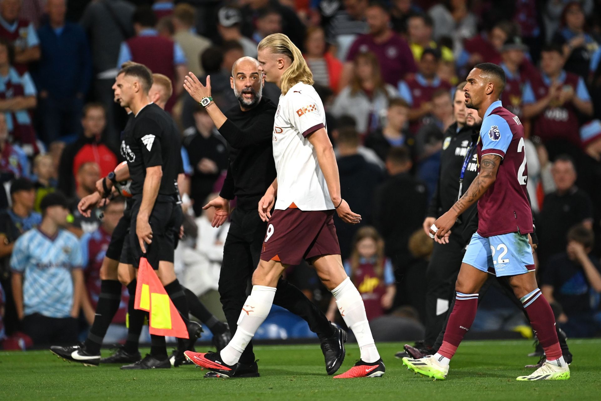 Erling Haaland put Manchester City ahead in just the fourth minute with his very first touch of the new season. Kevin De Bruyne sent a superb cross into the Burnley box which Rodri headed down towards the City striker. He made no mistake in firing Guardiola's side 1-0 up.