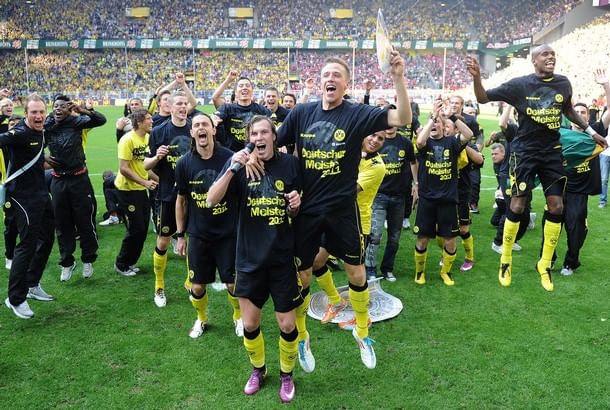 Borussia Dortmund celebrating their 7th title