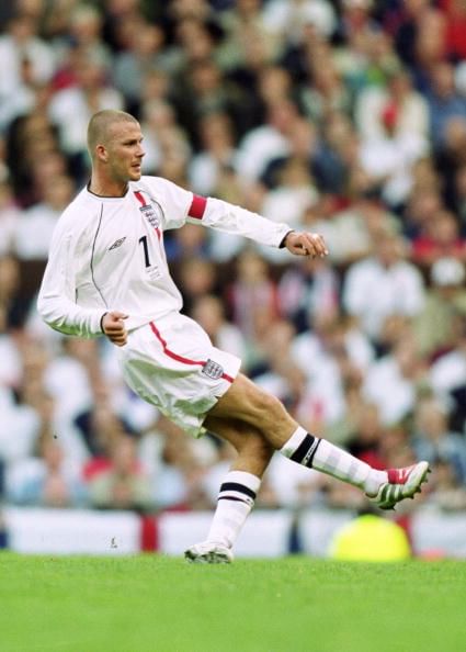6 Oct 2001: David Beckham of England in action during the FIFA World Cup 2002 Group Nine Qualifying match against Greece played at Old Trafford, in Manchester, England. The match ended in a 2-2 draw, England secured automatic qualification for the 2002 WC by finishing top of the group.