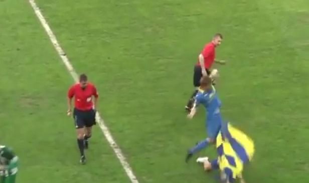 What was shocking was the cheerleader was not booked! Likhtarovich tried taking evasive action to avoid a head-on collision as the cheerleader ran blindly into him, and in the process fell down. Let’s just hope the referees and the Belarussian FA take retrospective action