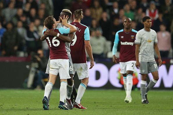 It took eighty-six minutes for the game to have its most eventful bit of action. A late challenge from Paul Pogba on Mark Noble sparked a furious reaction from the Hammers captain. Noble grabbed Pogba by his face which led both sets of players to arrive and separate the two.