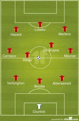 Therefore, the three-man defence will see Dedryck Boyata flanked by Jan Vertonghen on the left and Toby Alderweireld on the right. The wing-backs employed will be Yannick Carrasco on the left and Thomas Meunier on the right.