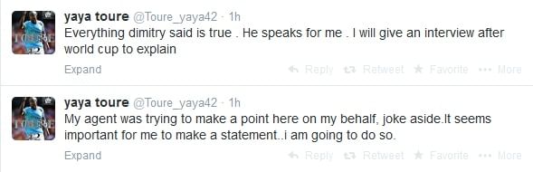 The 31-year-old Touré then took to Twitter to explain the entire situation. After initially distancing himself from his agents’ comments, he took a U-turn an hour later.