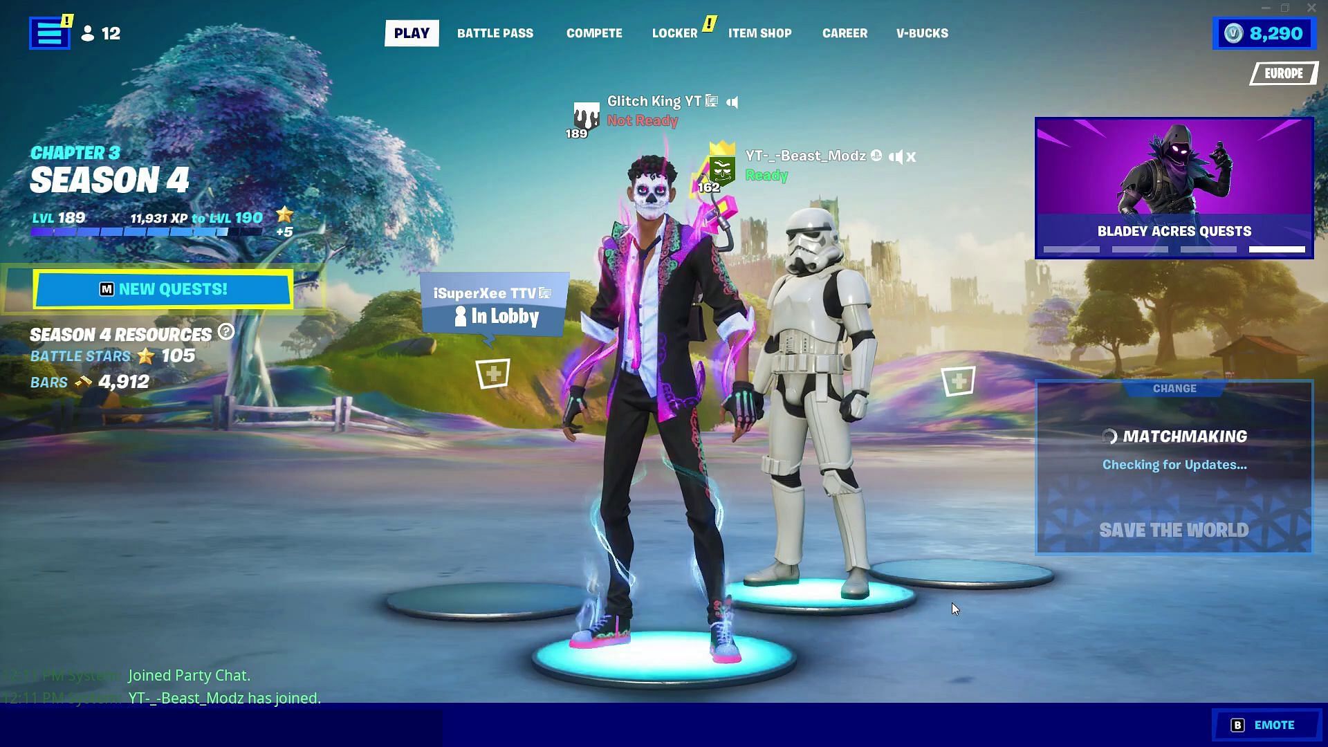 The first thing that players need to do to start this glitch is to select Fortnite's PvE campaign Save The World. Every player in the party needs to have purchased STW to ready up and load into a lobby. To make this glitch work, only one additional teammate is required other than yourself. Basically, the party size should be two Loopers.