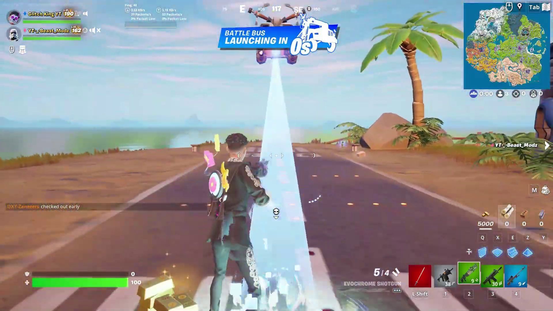 To proceed with this Infinite Wins glitch, you need to ask your teammate to immediately leave the match and return to the lobby right before the Battle Bus launch countdown ends. Once they leave the match, you will get a message in the prompt bar on the bottom left, stating that they "checked out early."