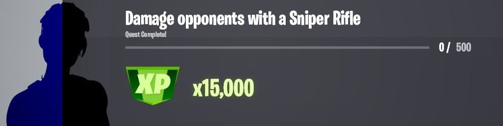 Thus, to encourage players to use snipers in Fortnite, Epic Games is offering 15,000 XP as the reward for completing a relatively simple task. All players have to do is inflict a total of 500 damage using a sniper rifle during one match.