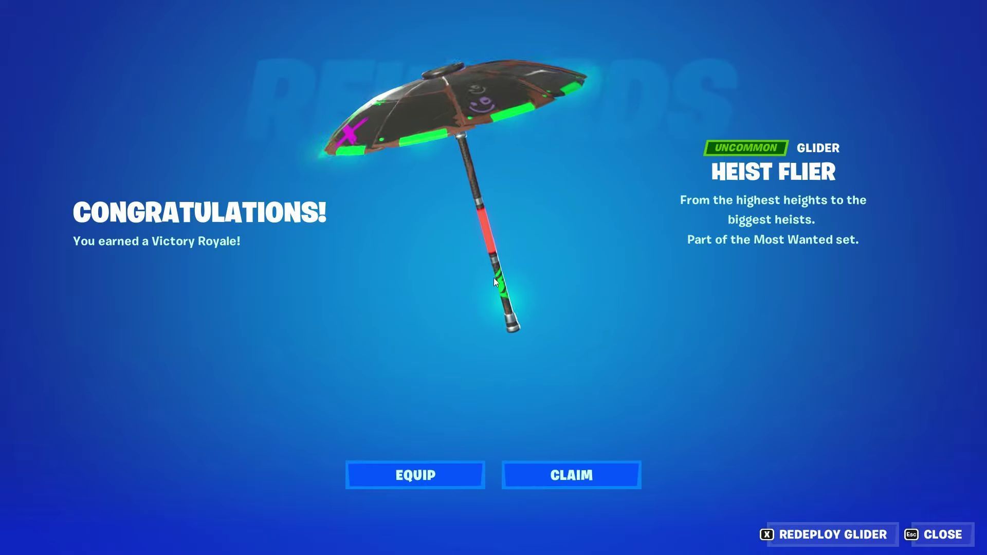 Based on a recently discovered Fortnite glitch by GKI, the Heist Flier umbrella can easily be redeemed by loopers without having to grind on the Most Wanted Quests or even winning a match during the event.