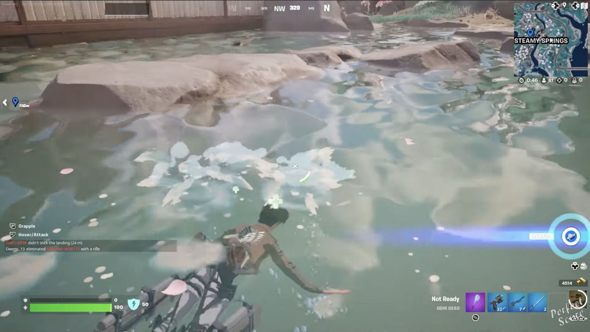 Just outside of Steamy Springs is the location for the healing water in Fortnite Chapter 4, Season 2. There's water there that looks different from the normal water. Swim in it to satisfy this challenge.
