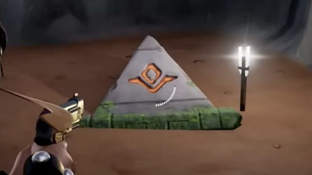 Once you have landed at Shuffled Shrines you have to scout the area for four different stones that bear symbols similar to the ones seen on the four stones placed together in front of the doorway. They will look something like the image below.