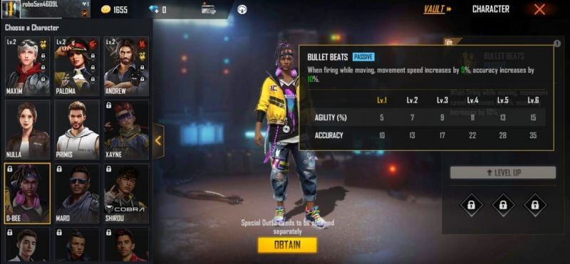 Characters like Andrew, Paloma, Maxim, D-Bee, Maro, Jai, Wolfrahh, and many more possess the passive character ability in Free Fire.