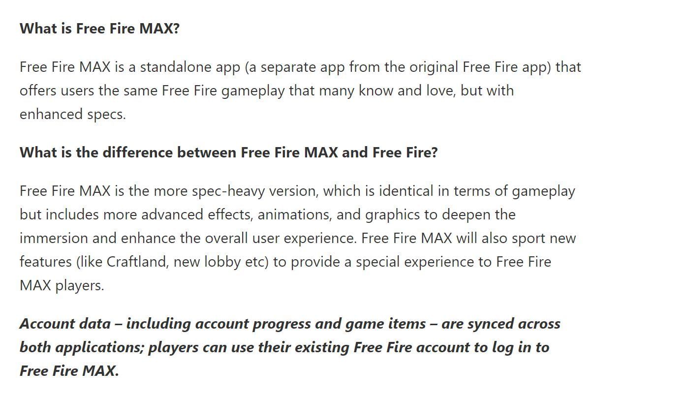 The answer to this question is rather straightforward. Both games are run on the same servers, and players can use the same account to participate in them. Although Free Fire MAX is a standalone application, the content and most other things are identical. There are, however, a few exclusive features, like the 360-degree lobby and more.