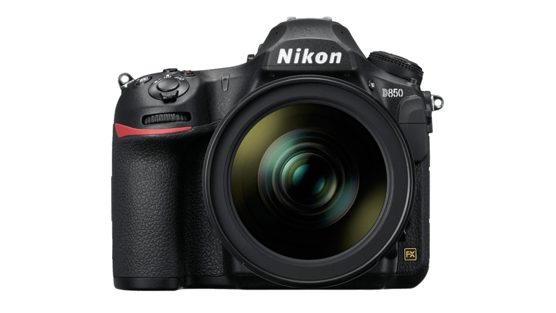 The Nikon D850 features a 45.7MP full-frame CMOS sensor, EXPEED 6 image processor, 7fps continuous shooting, in-body image stabilization, an optical viewfinder with 100% coverage, and an LCD touch screen.