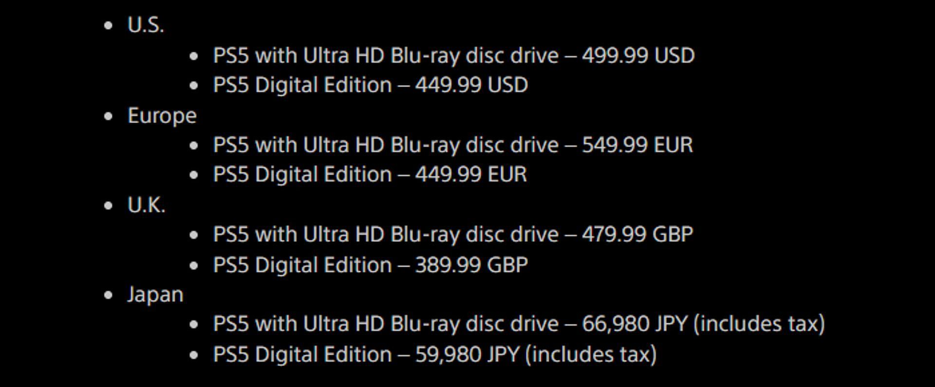 - PS5 (Ultra HD Blu-ray Disc Drive): $499.99