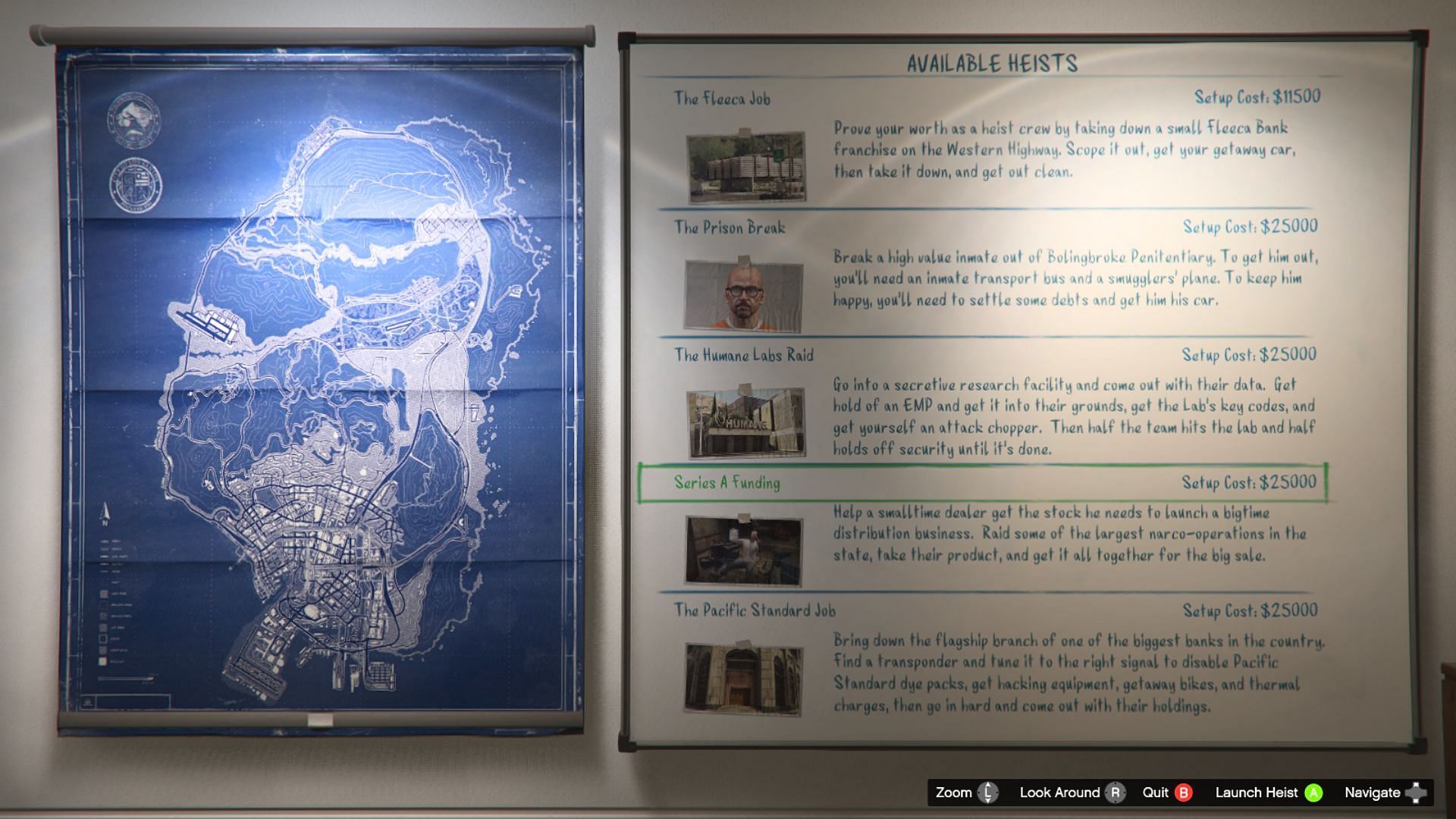 Rockstar Games provides the following five setup missions for the Series A Funding heist in Grand Theft Auto 5 Online: