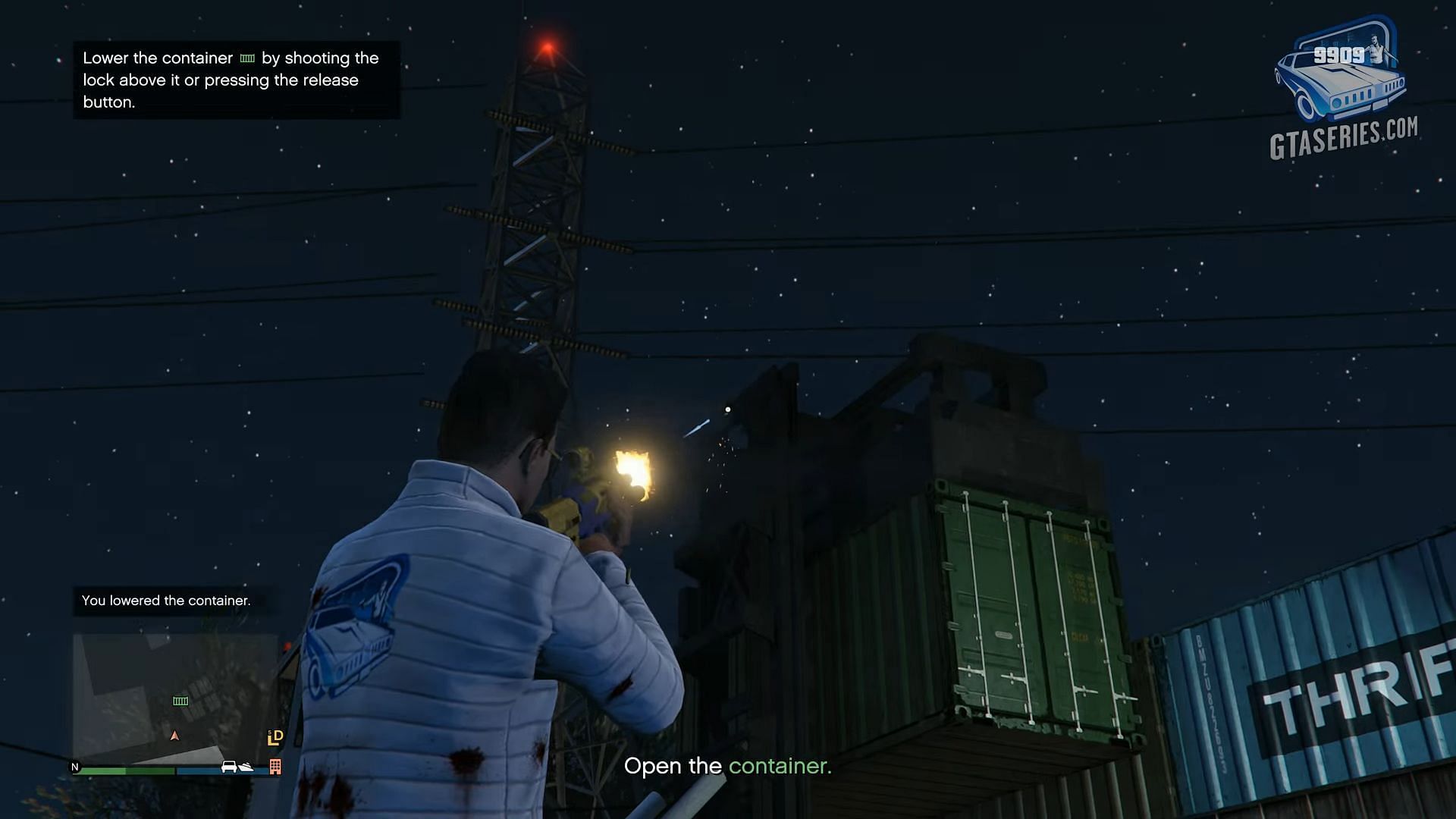 Once there, take care of the security, shoot down a container, and grab the charges from inside. You'll need to take these back to the Garments Factory while avoiding the guards that come after you.