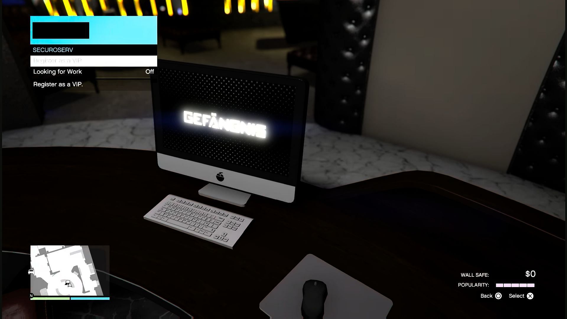 Upon doing so, players should be able to see the Interaction Menu. After selecting 'SecuroServ' from the options, players will be able to see a screen similar to what is shown in the following image.