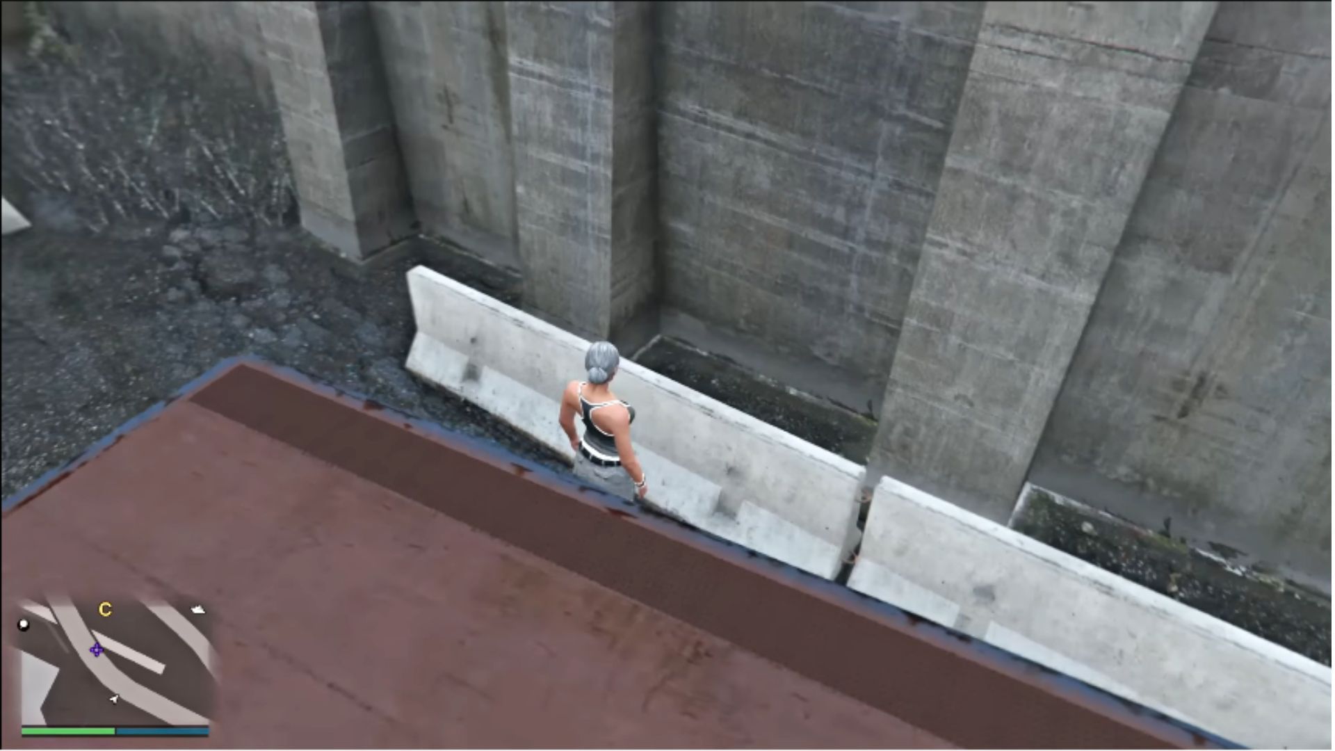 To get into the glitched space, jump over the barrier and walk towards the left. If done as intended, you will find yourself inside the wall, hidden from other GTA Online players and NPCs.