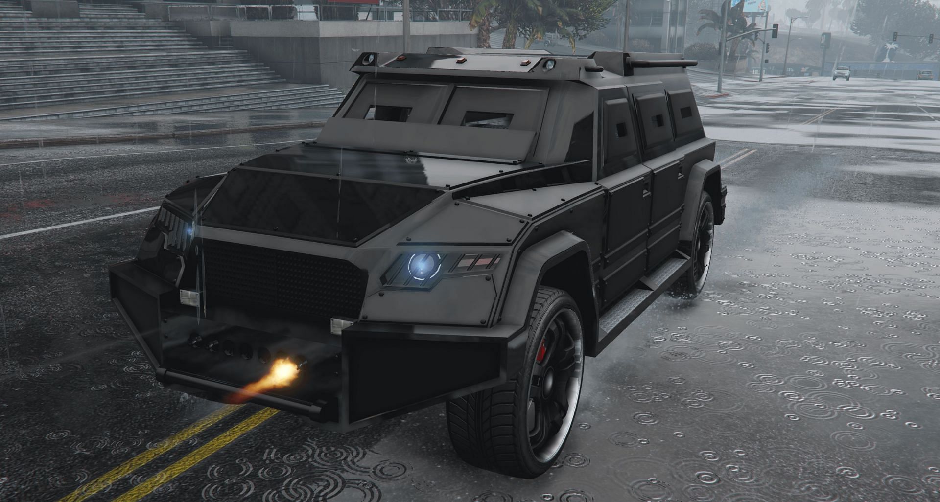 For instance, the Nightshark is a weaponized car featuring quick-firing dual machine guns fixed beneath its headlights. Additionally, the vehicle can withstand 26 Homing Missiles, eight RPG, Grenades, or Sticky Bombs, 22 Heavy Sniper MK II Explosive Rounds, four Tank Cannon hits, and one Anti-Aircraft Dual 20mm Flak when its armor has been completely upgraded.
