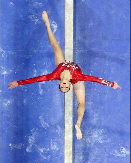 At only 16, Olsen landed it perfectly only to following it up with a handspring tucked Rudi that earned her a comfortable spot in the finals with a total score of 14.950.