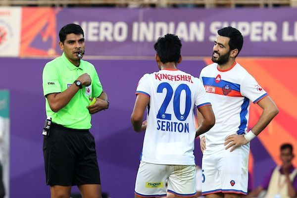Just after Goa had taken the lead, Pune made a good move down the left through Marcelinho. Just as he looked to dart into the box with the ball at his feet, he was brought down by Sergio Juste.