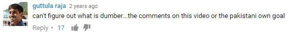 And finally, appropriate words from YouTuber guttula raja. What we can safely say is that his wit is certainly superior when it comes to this match. The comments really are pretty dumb. Or hilarious. Depends on who you support.