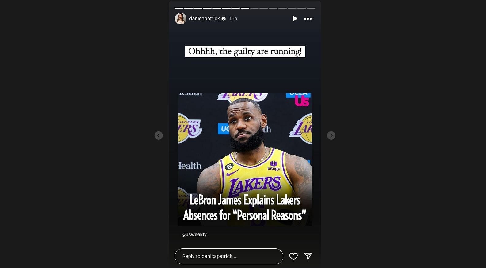 Danica Patrick dropped a five-word reaction to LeBron James returning for the recent Los Angeles Lakers game after being absent for the last two games. Widely known as 'King James', the four-time NBA champion had briefly stepped away from the court and was absent from the games due to 'personal reasons'.