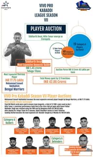 Siddharth Desai earned the largest paycheck for an Indian player as the Telugu Titans signed him up for a sum of ₹145 lakh while Iran's Mohammad Esmail Nabibakhsh claimed the highest bid for a foreign signing when the Bengal Warriors spent a total of ₹77.75 lakh on the Iranian all-rounder.