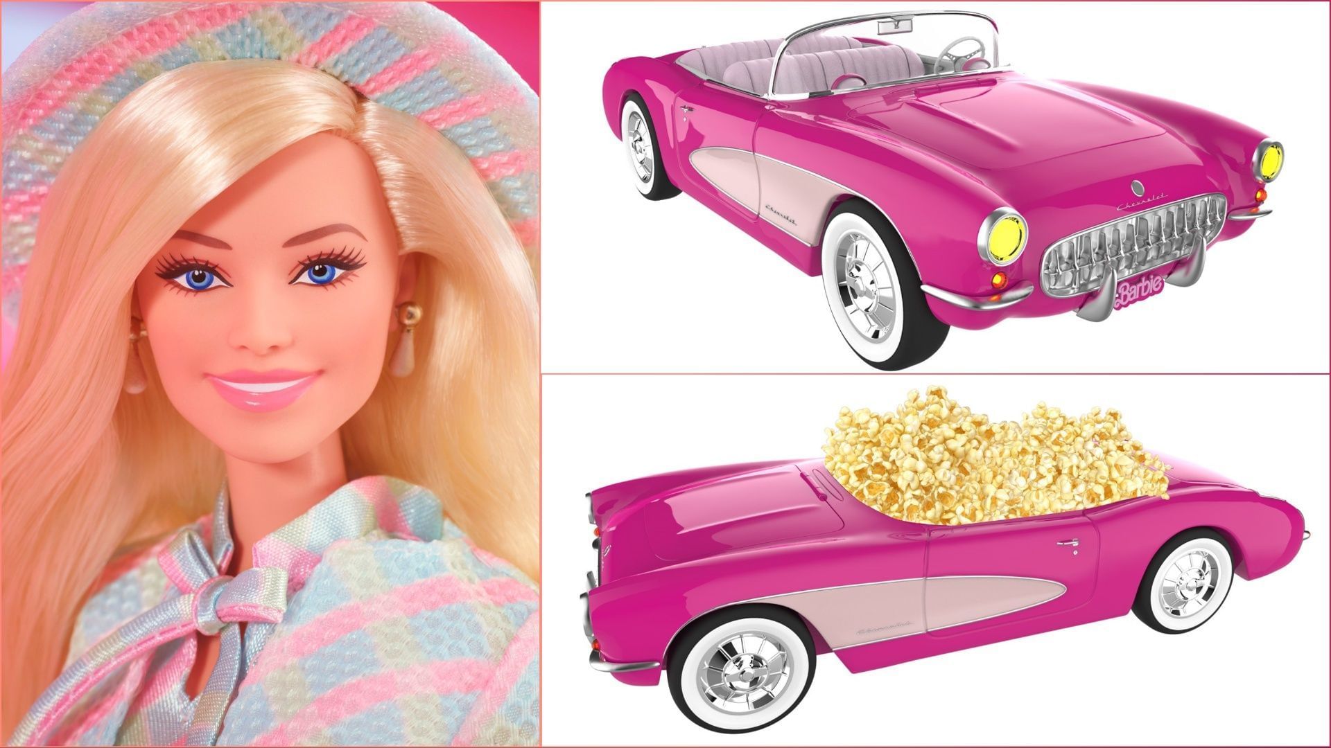 AMC Theatres have collaborated with Barbie for a promotional campaign and have released an exclusive range of memorabilia, including a themed popcorn container. Shaped like Barbie's pink Corvette, the themed popcorn bucket will be sold for over $34.99 and can hold up to 85 oz. of popcorn.