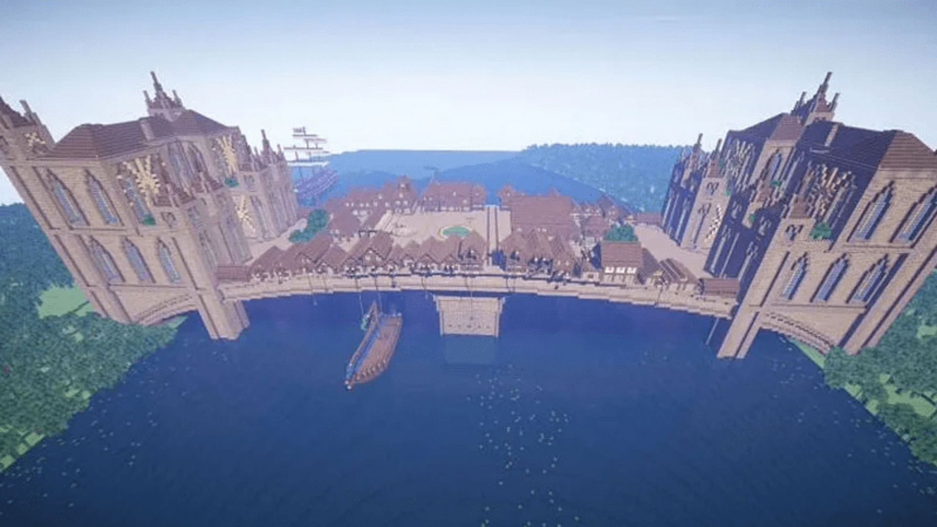 Reminiscent of architecture in cities such as Venice, Italy, this Minecraft build features an entire small-scale city on it. The two gatehouses of the bridge also appear to be inspired by European architecture, giving this whole bridge a detailed appearance while remaining functional.