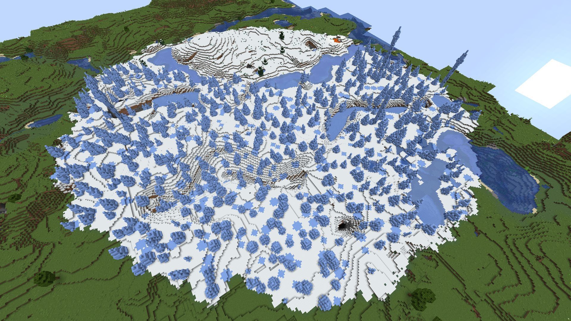 These villages should give players enough loot to get started, and the ice spike biome would make an amazing focal point for a large-scale base and would be easy to spot from a distance as it contrasts so well with the surrounding area.