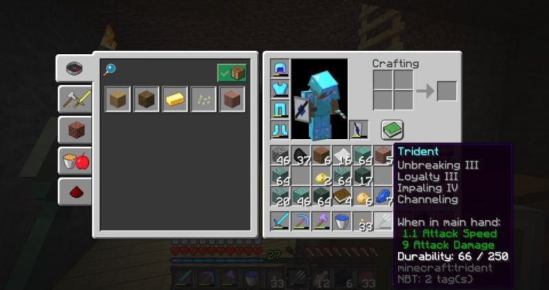 In the Minecraft Bedrock Edition, the impaling enchantment is narrowly expanded, affecting all mobs in contact with water. This means impaling works if the mob is in the rain, underwater, or standing in water.
