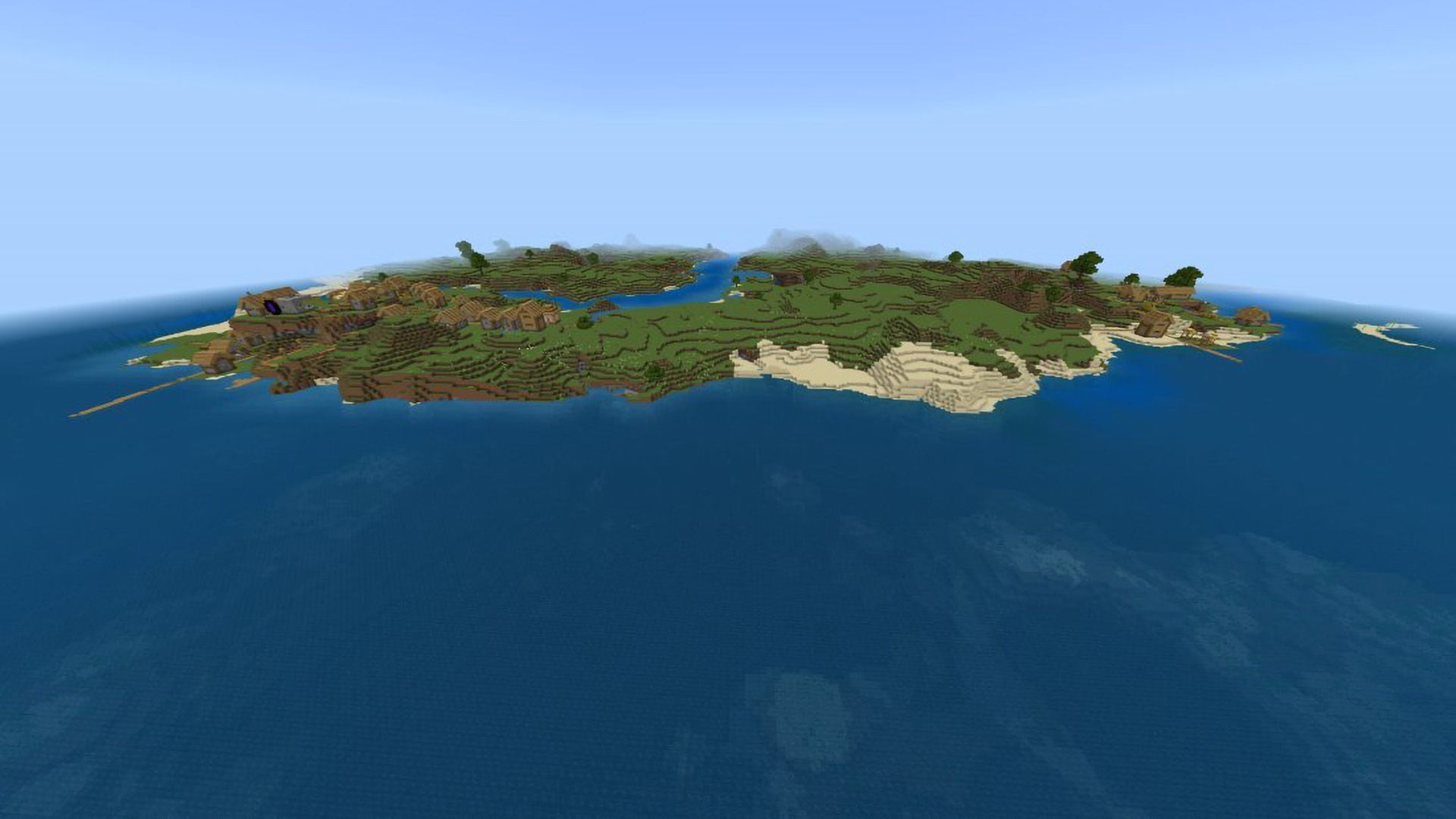 This is an amazing Minecraft seed featuring an island full of surprises at spawn. The village on this island contains four blacksmiths, and it features a Ruined portal in the middle of the water. The chests in the houses of the blacksmiths contain enough obsidian to build this Ruined portal that takes you to the Nether.