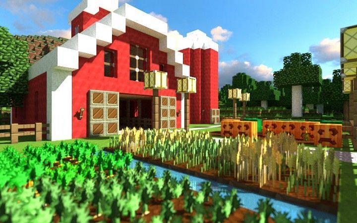 Some easy farms to create are wheat farms, cow farms and chicken farms. Players can also use their farm locations as a place to build barns to house their livestock mobs or for storage purposes.
