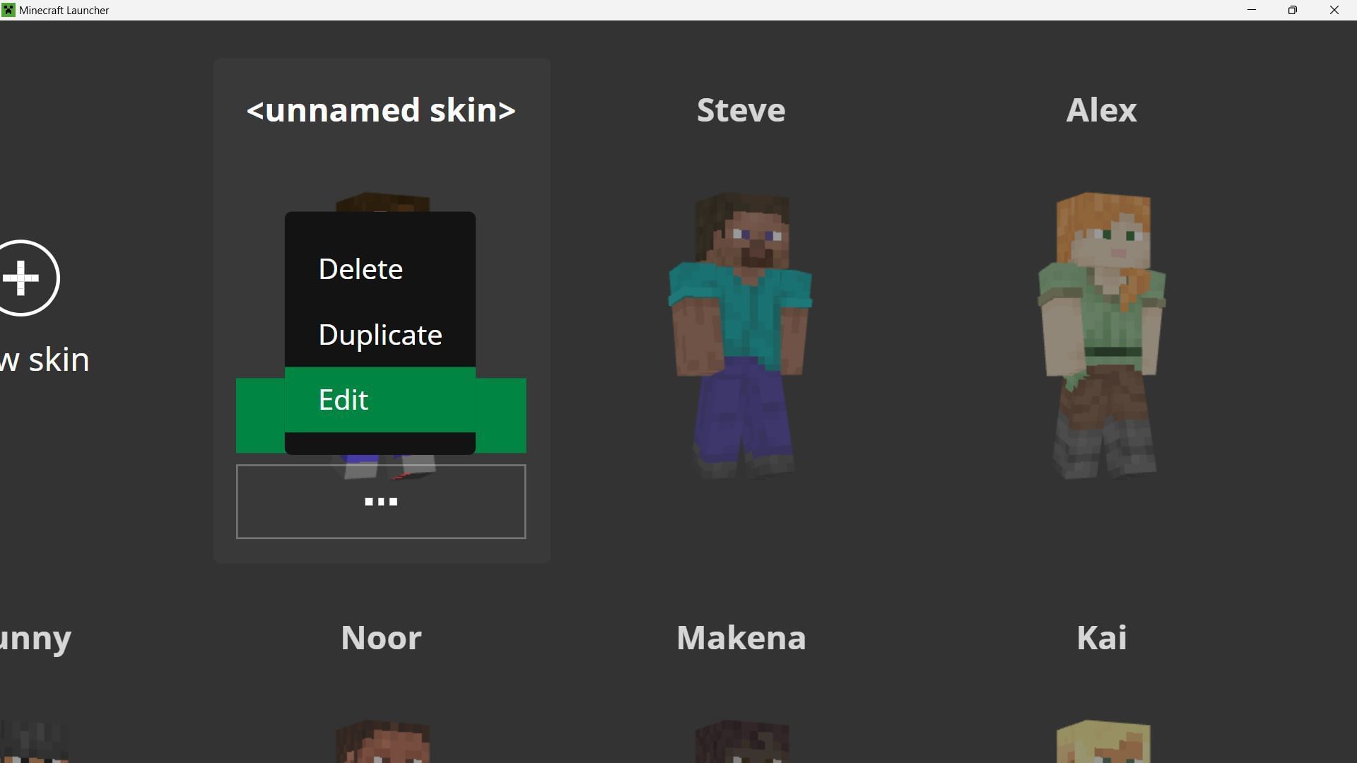 - Each skin will have three dots, which open the menu. Select any desired variant and press the Edit button.