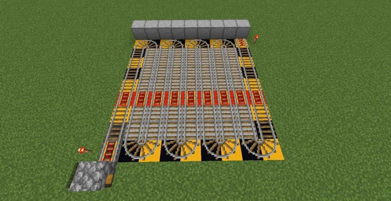Players can make a simple hopper minecart collection system using some rail tracks, powered rail tracks, and Redstone. Make this system right below the tilled blocks so that the hopper minecart can collect it. Lead some tracks over hoppers going into chests, as shown in the image.
