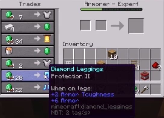 Players can obtain diamond tools, weapons and armor from toolsmiths, weaponsmiths and armorers, respectively. Their master and expert level trades have diamond gear available for emeralds.