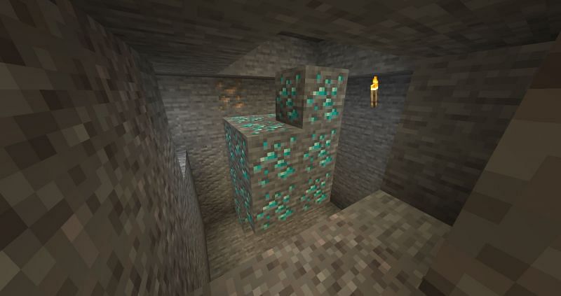 Even though strip mining provides lots of diamond ores, it can be time-consuming. An easy way to find diamonds is to explore caves and ravines below height level 16. Players can easily identify diamond ores from their shiny blue texture.