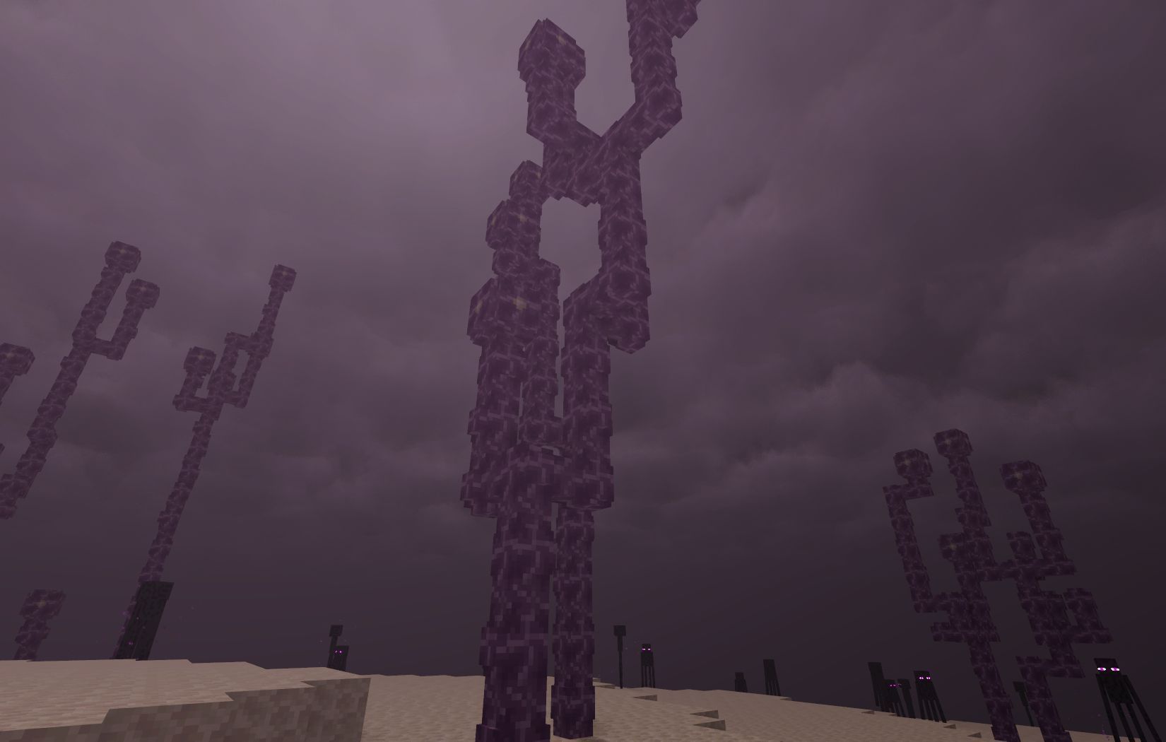 The chorus is a plant-like feature that generates in the highlands of the outer End islands. It consists of chorus plant blocks and chorus flowers. The flower generates at the top of each branch. While the plant heights range between five and 22 blocks, most stop growing before they reach 16 blocks tall.