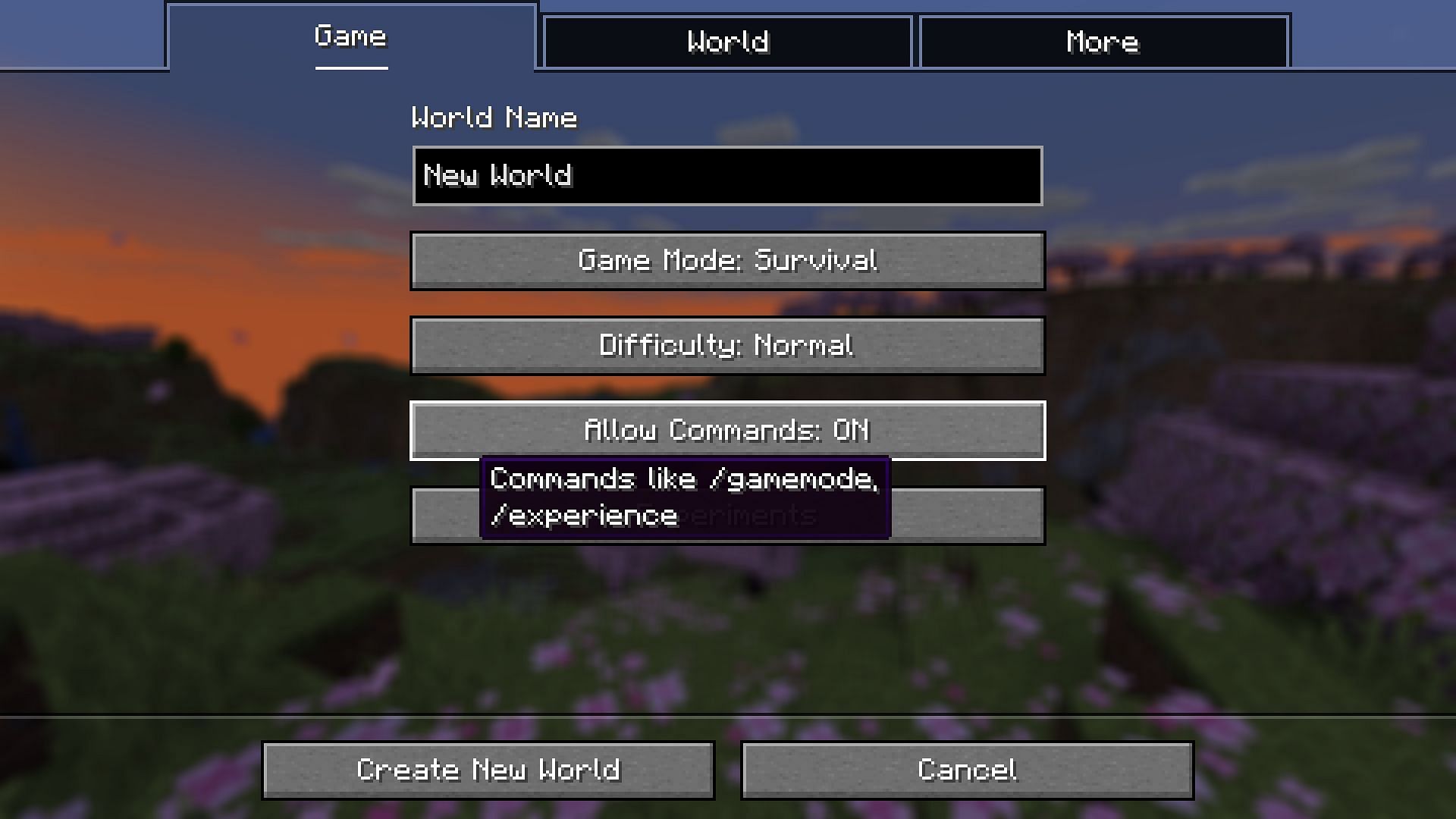 To utilize even the most basic "/summon" command, your world must have cheats enabled. This feature is integral to the game and can only be enabled when creating a new world. The "Allow commands" option can be found on the world creation screen, as depicted in the image above.