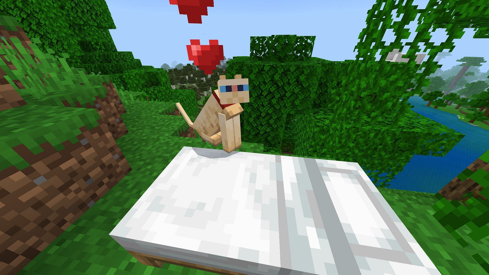 For this achievement, players need to first tame a cat. Cats can be found in villages and can be sneakily fed raw cod or salmon to tame. Once tamed, cats will usually sleep with their owner on the bed during nighttime. When both the feline and the player wake up, there is a 70% chance that the former will drop a gift for the player. The gift can be anything like a rabbit's foot, rabbit's hide, string, rotten flesh, feathers, raw chicken, and even phantom membranes.