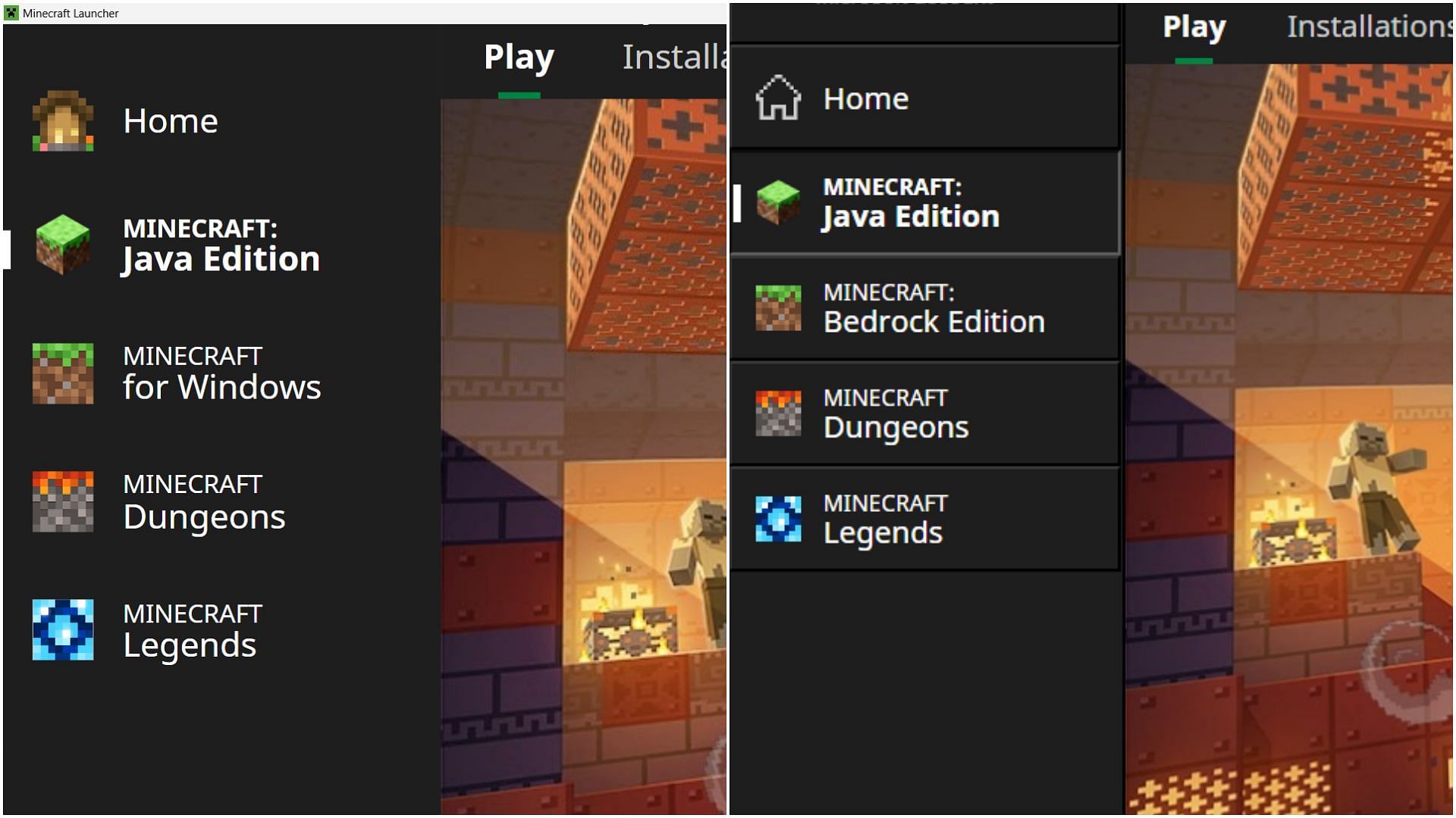 The other minor change that Mojang brought to the Minecraft launcher was an overhaul of the left-side panel. Previously, the left panel did not have any distinction between the different games that Mojang Studios makes. Now, they have created separate buttons for each game so players can easily distinguish which game is selected in the launcher. The buttons themselves have become slightly smaller in size.