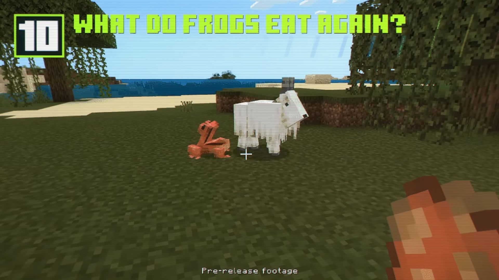 Frogs are a unique mob in Minecraft. They are the only mob with a unique animation for eating another mob, intended to be used on slimes and magma cubes. However, while in development, a Mojang developer set the frog to eat goats so they could test the eating code. Mojang forgot to remove this code, and in the initial beta containing frogs, they would routinely devour goats for fun.